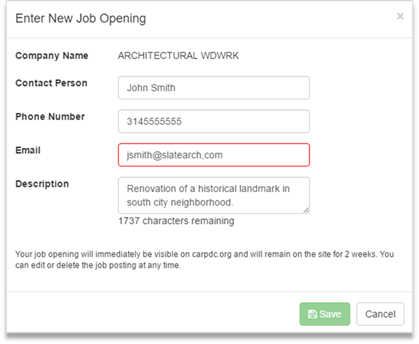 To add a new job opening to the carpdc.org website: