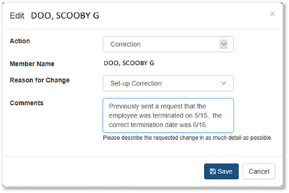 •In the ‘Comments’ field, please describe the requested change in as much detail as possible.